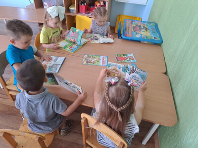 В течение дня дети с удовольствием рассматривали книги и иллюстрации с русскими народными сказками,