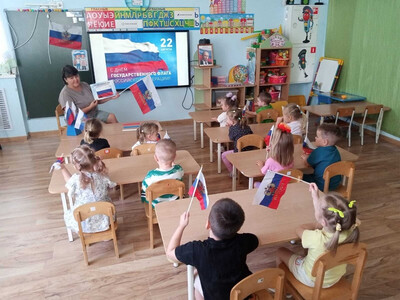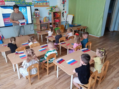 Дошкольники познакомились с историей флага, читали стихи о Родине и флаге, играли в игры.
