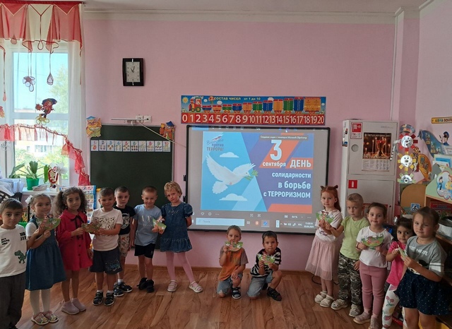 3 сентября в подготовительной группе "Радуга" прошло мероприятие, посвящённое Дню солидарности в борьбе с терроризмом. В ходе беседы "Мы против террора" ребята поговорили о правилах поведения во время террористической угрозы. Познакомились с событиями теракта в Беслане, почтили память погибших минутой молчания! Также ребята приняли участие в акции "Голубь мира", сделали из бумаги в технике оригами голубей, чтобы выразить свою поддержку миру. Родителям раздали памятки по предотвращению террористических актов. Мы верим, что вместе мы победим терроризм!