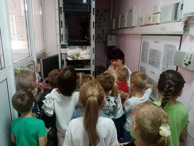 Дети посетили рабочее место вахтера, который рассказал о мерах защиты детского сада от террористов.
