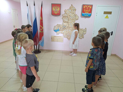 Ребята с интересом рассматривали карту и символику области, слушали гимн.