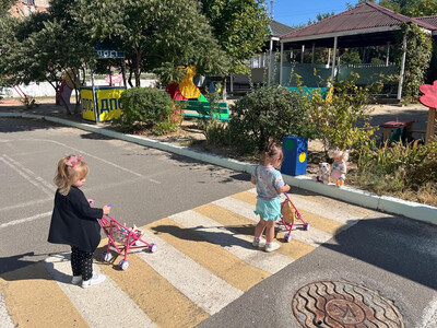 В игровой форме дети познакомились с правилами дорожного движения, светофором и пешеходной дорожкой.