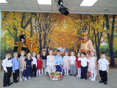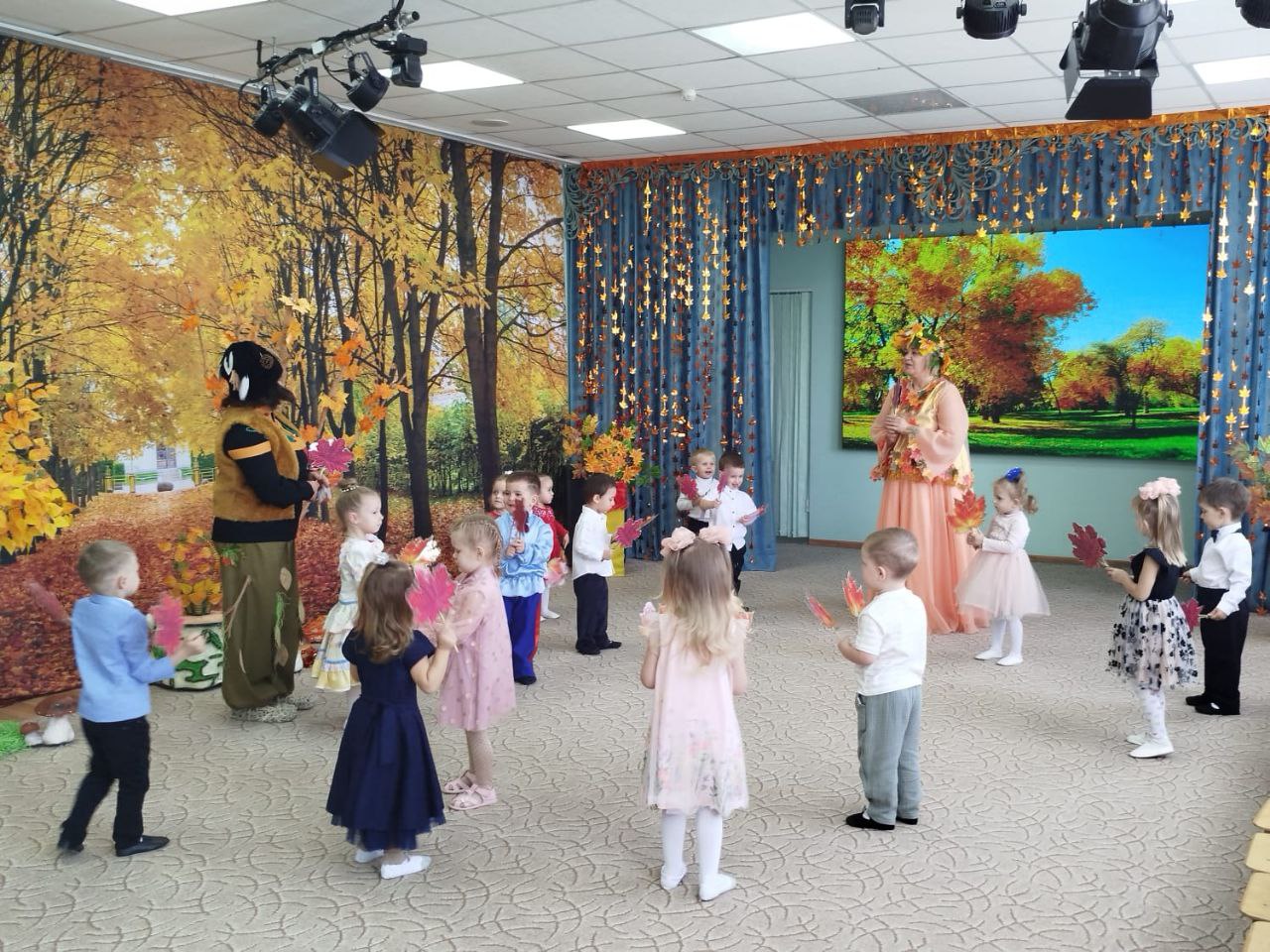 Осень поблагодарила малышей за стихи,песни, танцы осенним угощением.