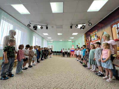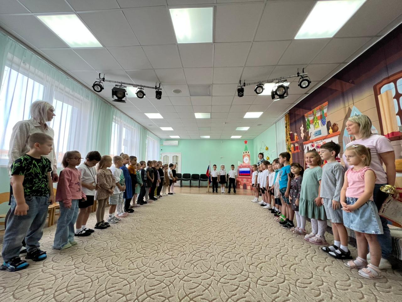 Утро понедельника в нашем саду начинается с внесения Флага и исполнения Гимна Российской Федерации.