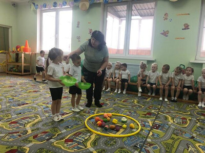 Две дружные команды - "Овощи" и "Фрукты" соревновались в ловкости, силе и выносливости.