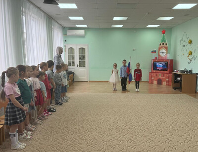 Утро в нашем саду начинается с внесения Флага и исполнения Гимна Российской Федерации.
