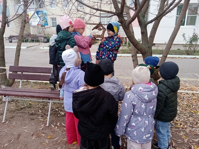 Воспитанники наблюдали птиц, прилетающих на участок. Насыпали корм в кормушки.