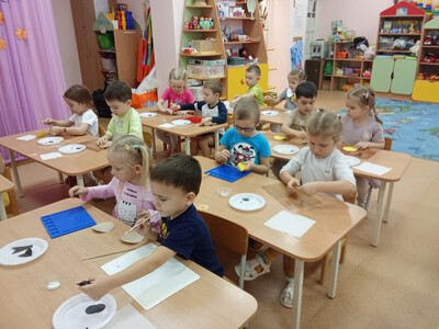 Для детей организована продуктивная деятельность - рисование «Синичка».
