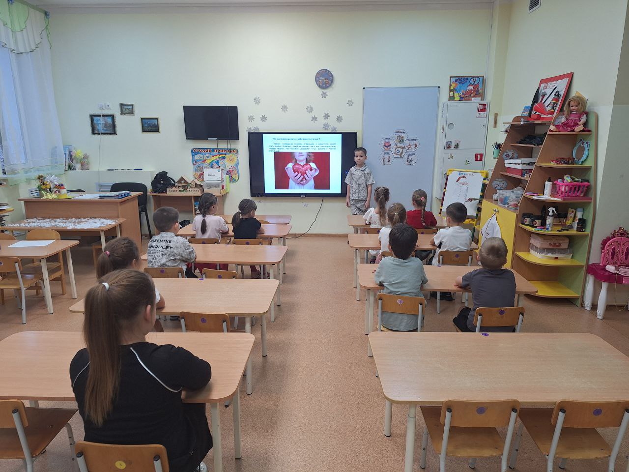 С воспитанниками проведена познавательная беседа с просмотром презентации "Мир спасёт доброта ", оформлена выставка детских рисунков, родителям вручены буклеты "Вместе мы сильнее".