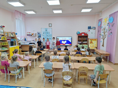 Ребята подготовительной группы "Радуга" просмотрели мультфильм "День добровольца",