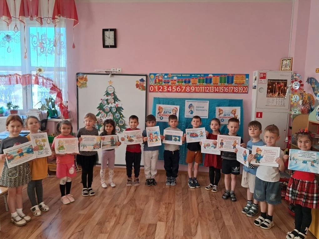 Вместо новогодних игрушек дети использовали яркие картинки безопасности во время зимних прогулок.