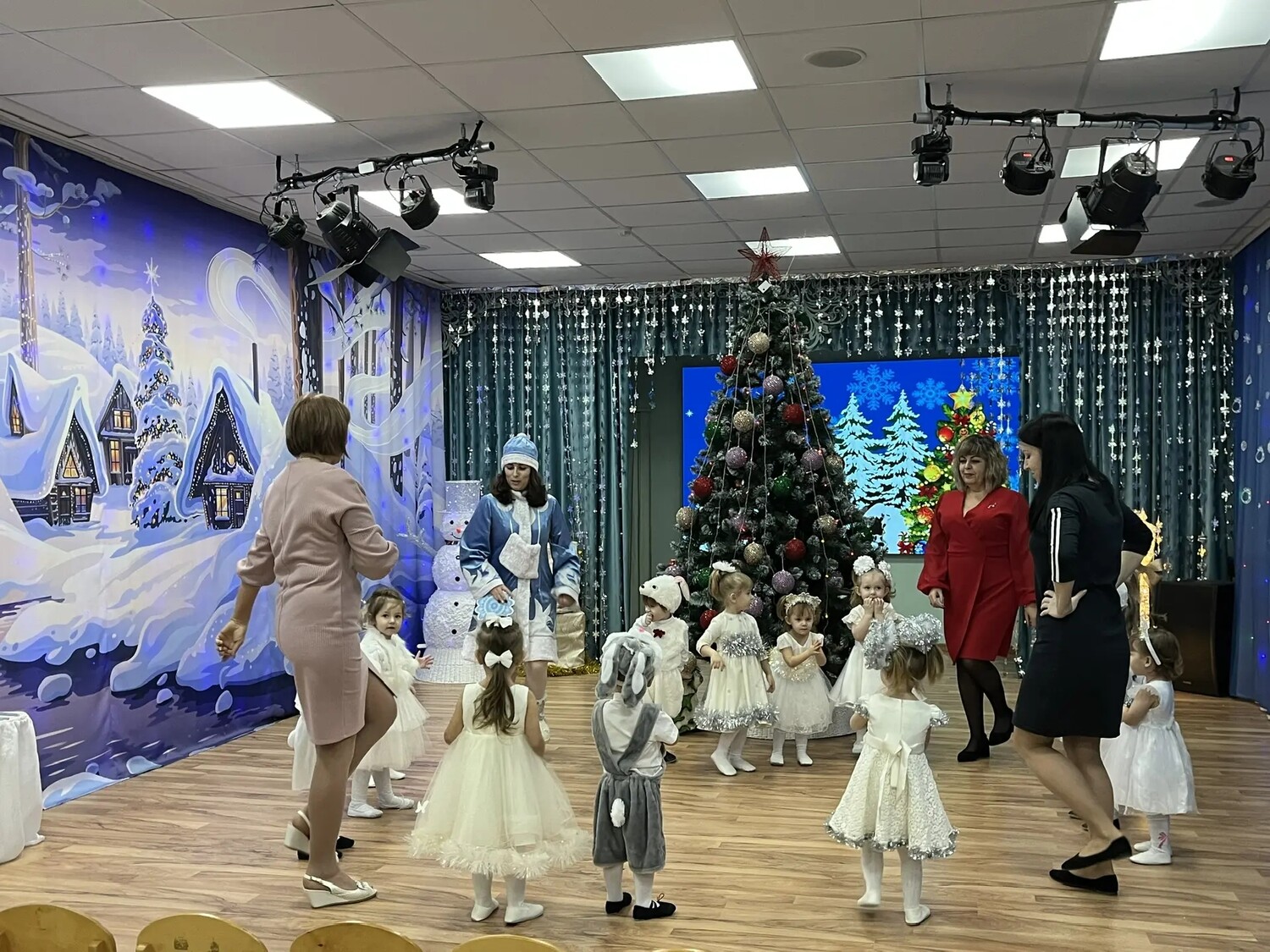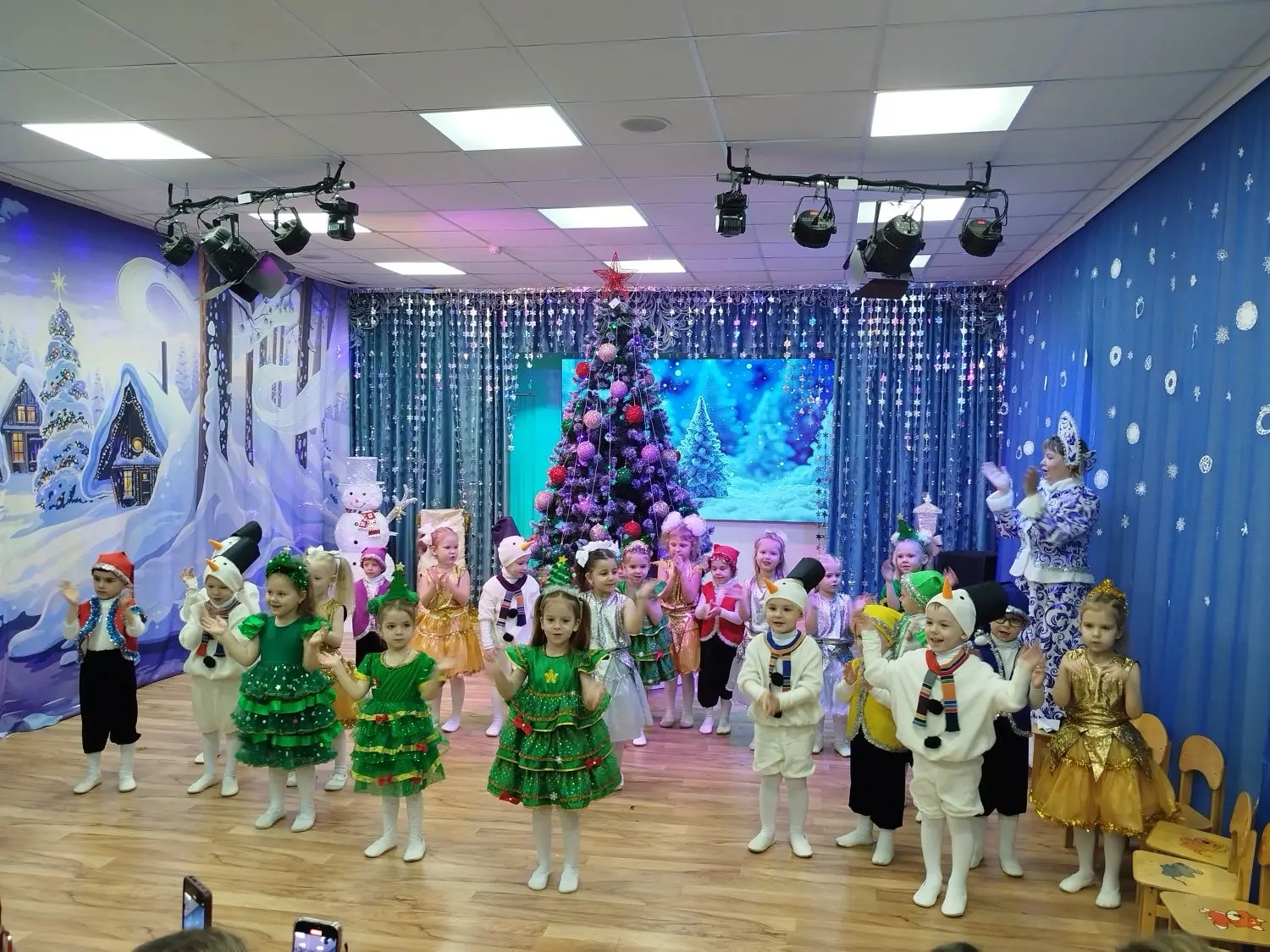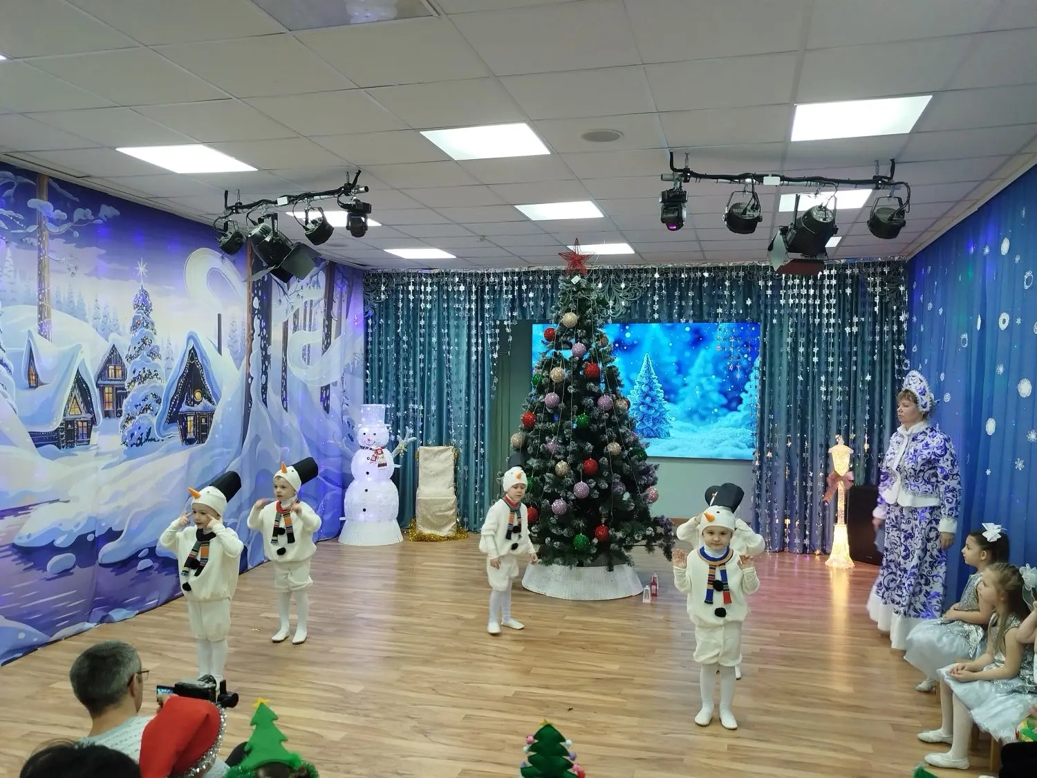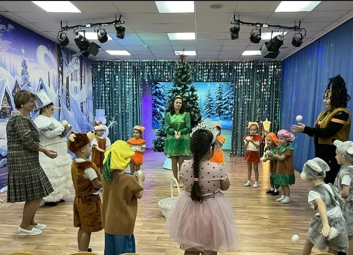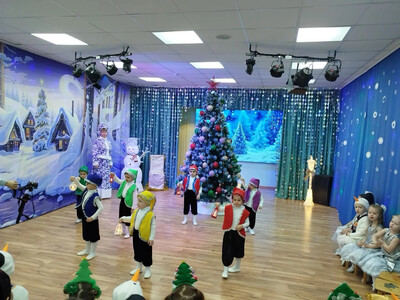 отгадали загадки, прочитали новогодние стихи, участвовали в весёлых эстафетах и танцах.