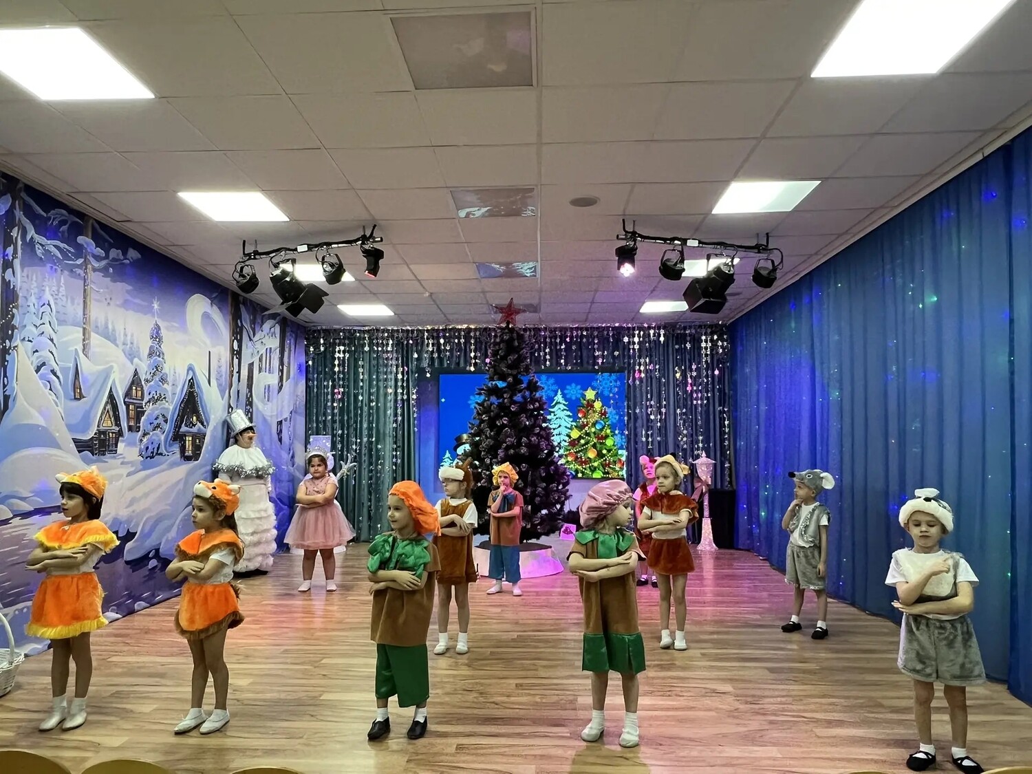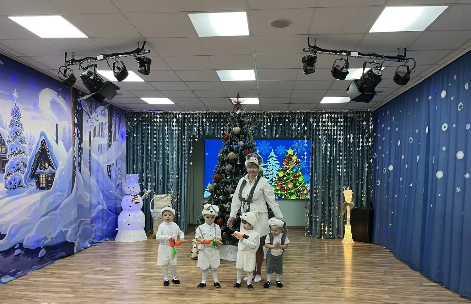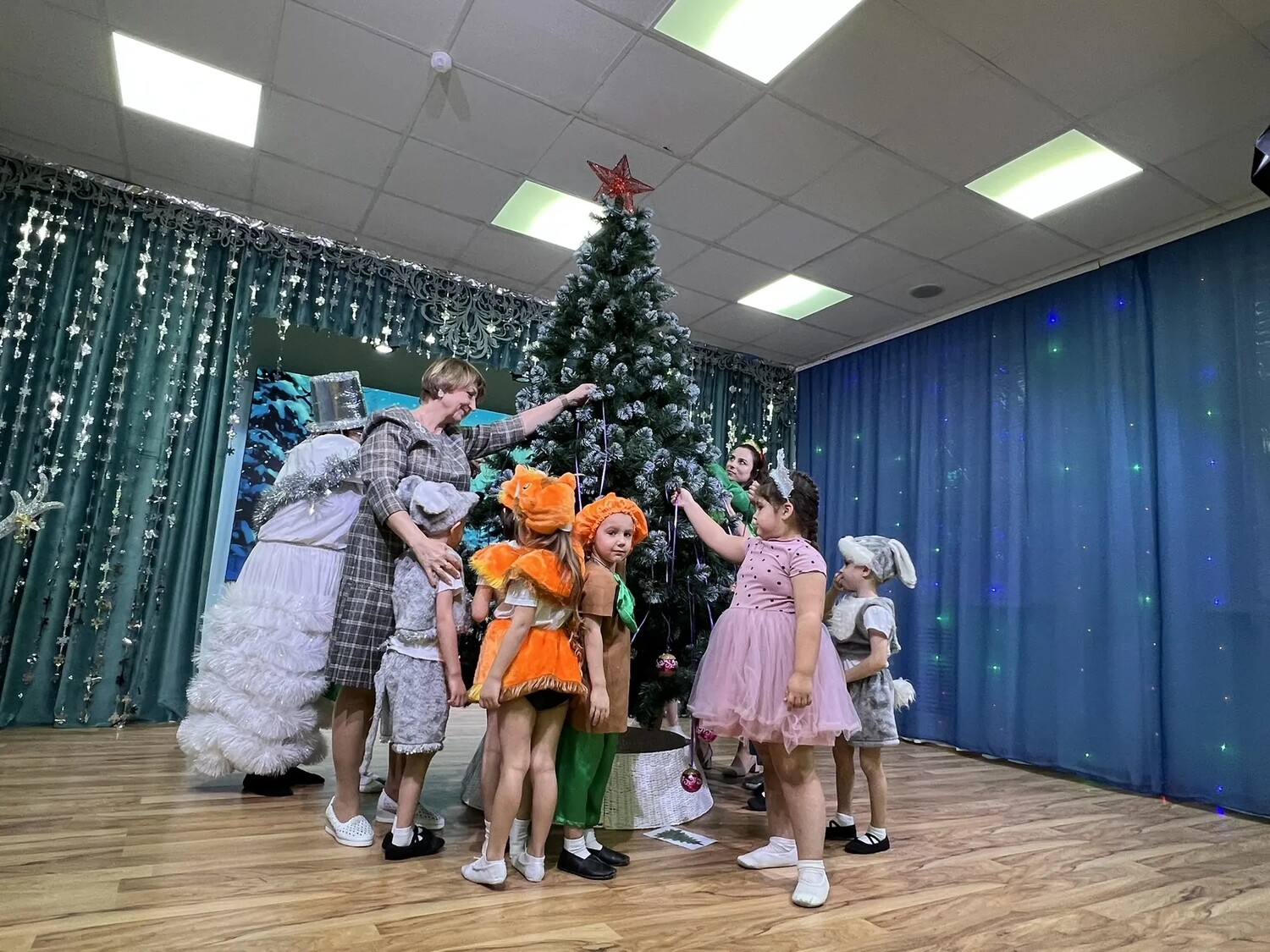 отгадали загадки, прочитали новогодние стихи, участвовали в весёлых эстафетах и танцах.