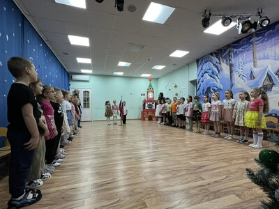 Утро понедельника в нашем детском саду начинается с внесения Флага и исполнения Гимна Российской Федерации.