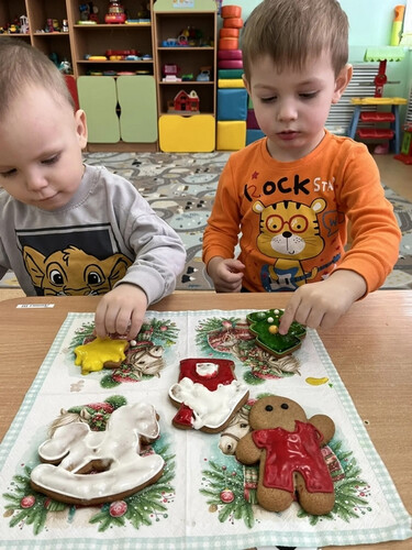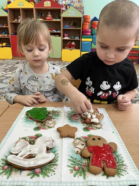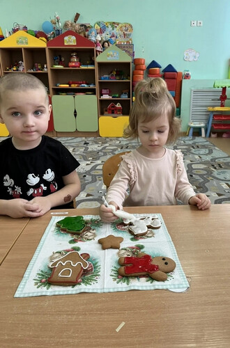13 января в группе раннего возраста «Весёлый лучик» организована творческая мастерская по изготовлению новогодних пряников. Ребята с удовольствием украсили пряники , проявив своё творчество и фантазию.