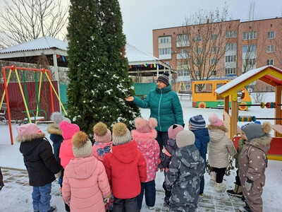 Дети младшей группы "Колокольчик " с большим восторгом любовались заснеженной природой,