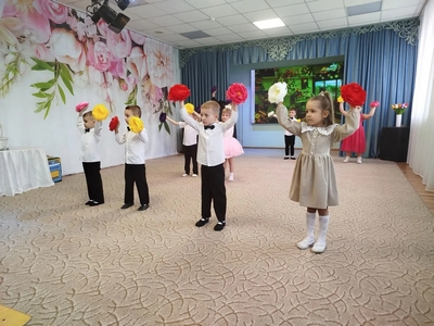 Под звуки музыки детсадовцы, родители и педагоги радовались вместе, создавая тёплую семейную атмосферу.
