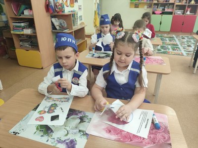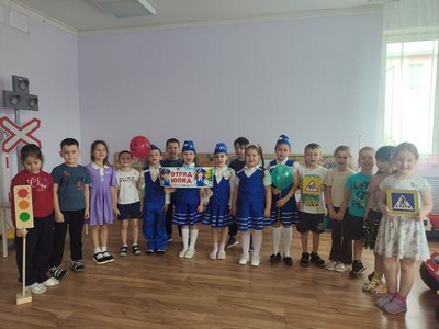 Воспитанники подготовительной группы "Ручеёк" и команда ЮПИД "Зелёный свет"