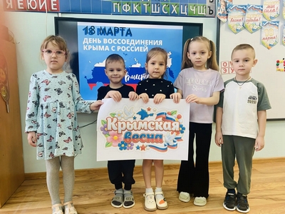 18 марта в старшей группе "Казачата" прошёл тематический день, посвящённый Дню воссоединения Крыма с Россией.