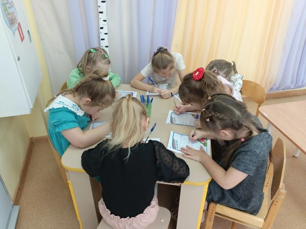воспитанники подготовительной группы "Радуга" написали письма солдатам и нарисовали рисунки,