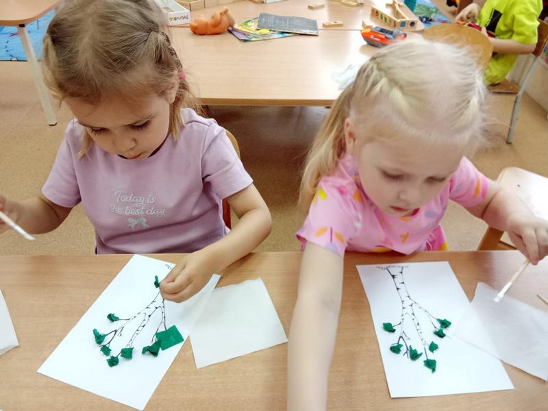 В средней группе" Ромашка" прошла образовательная деятельность по экологии "Сердцу милая березка". Дети приняли активное участие в беседе о символе России - березе и выполнили аппликацию.