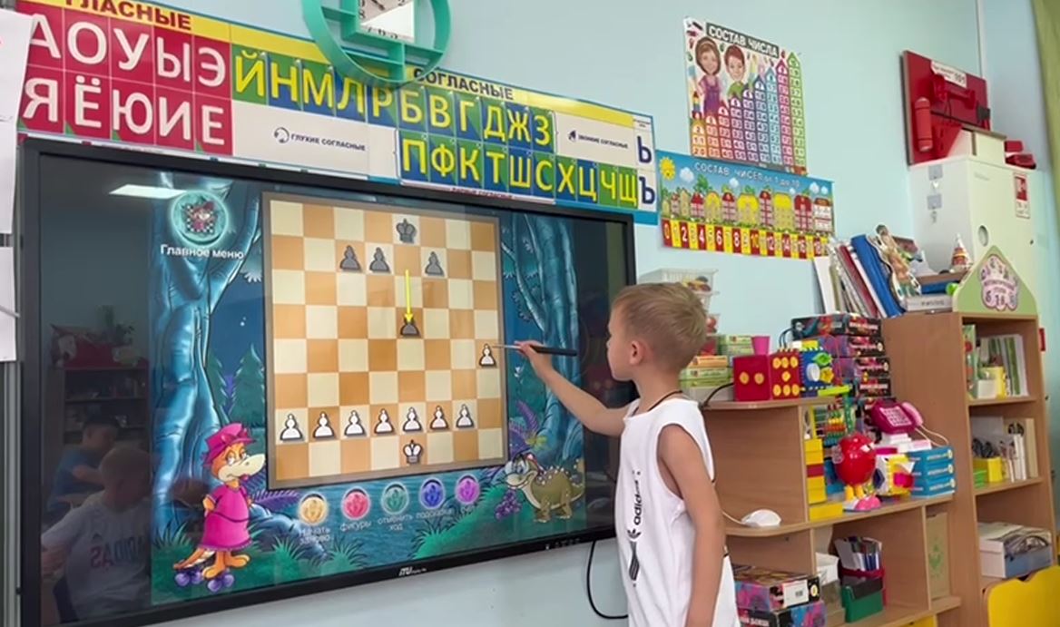 В течение года воспитанники группы «Колокольчик» изучали «Шахматную азбуку» вместе с динозавриком Дино, используя интерактивный комплекс с набором интерактивных программ «Школа профессора Дроздова».
